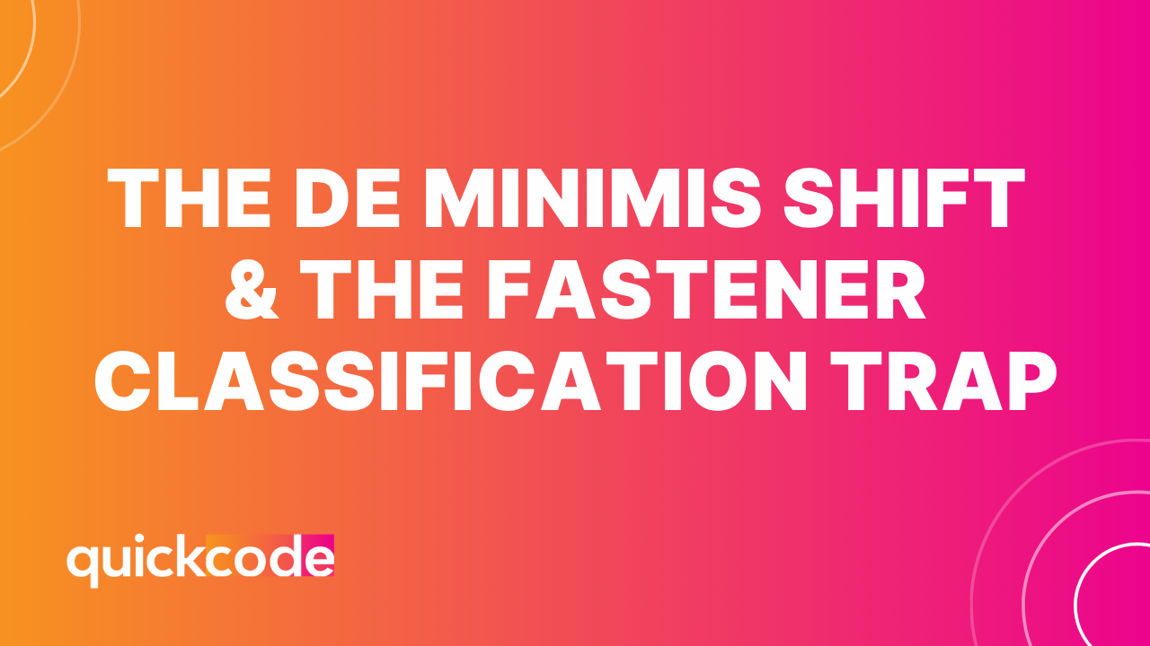 The De Minimis Shift & The Fastener Classification Trap